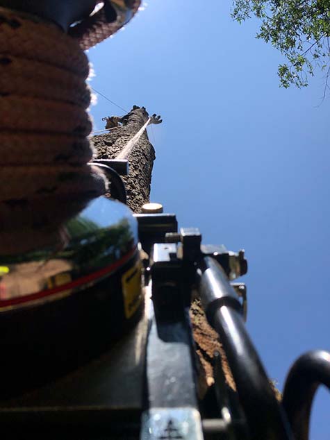 • Rigging –  Involves utilizing ropes and pulleys to control the decent of tree parts so as to protect structures, landscapes, and any obstacle that the site may have. Our crew will set up a custom rigging system to maintain complete control of each piece of the tree being removed.